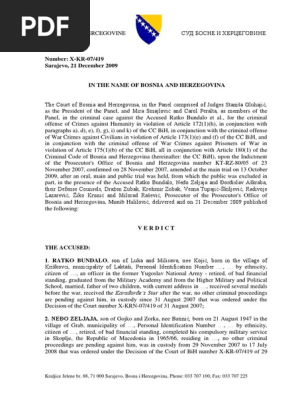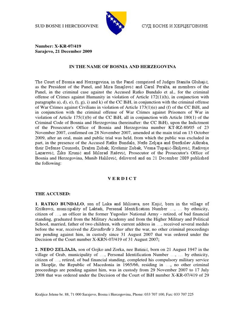 V E R D I C T Ratko Bundalo Neđo Zeljaja Sarajevo 21 December
