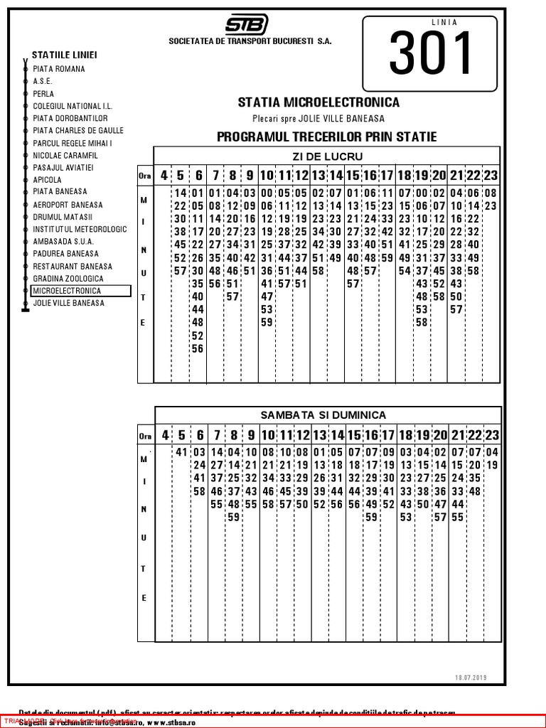 301 Route Time Schedules Stops Maps Pasaj Cfr Tunari Piața